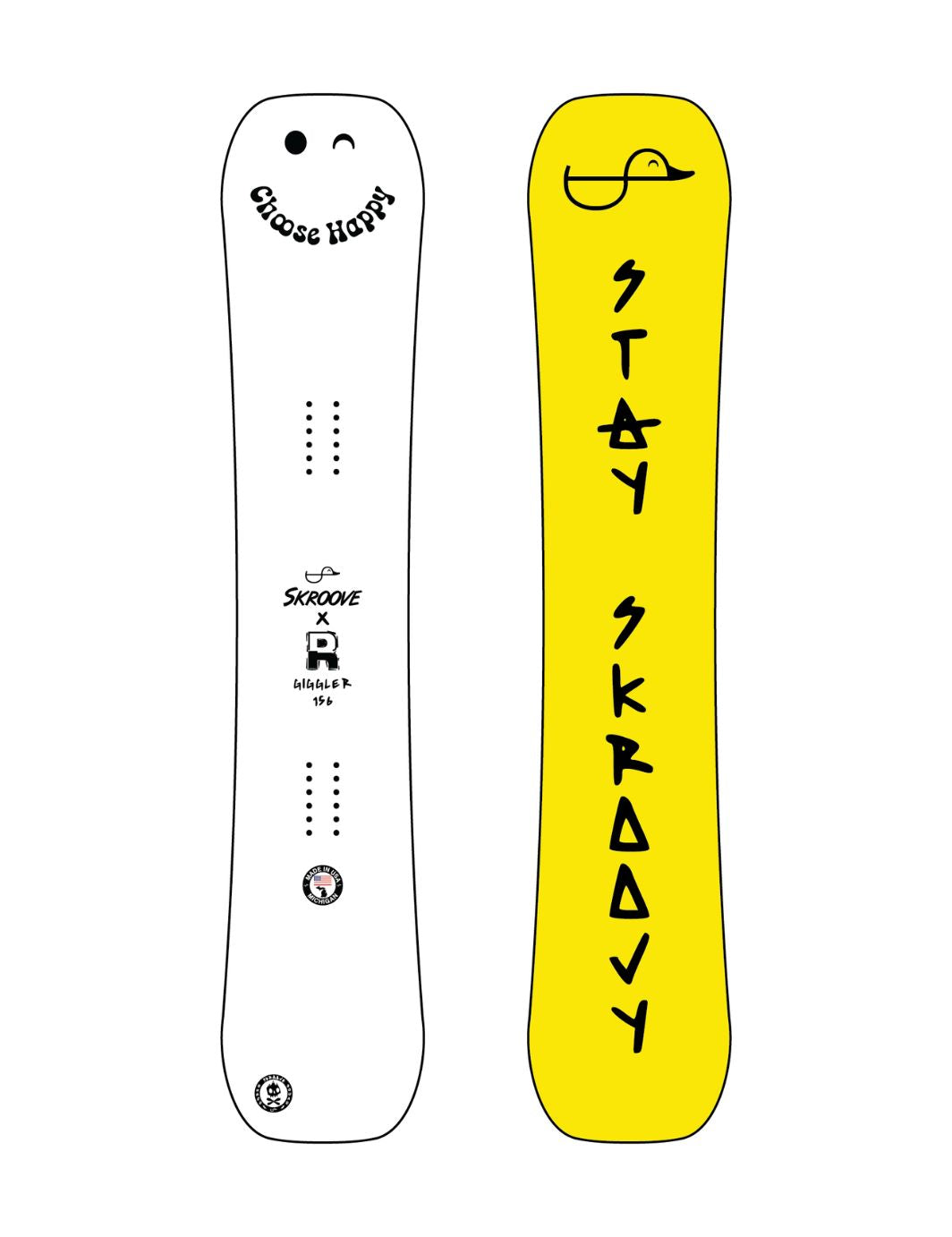 We teamed up with No Respekt to build a board that is guaranteed to put a smile on your face whether you're slaying the park or carving the mountain. The Giggler is an all mountain true twin, with traditional camber, proudly Made In Michigan and perfect for the Midwest rider. Stay Skroovy ~ Choose Happy